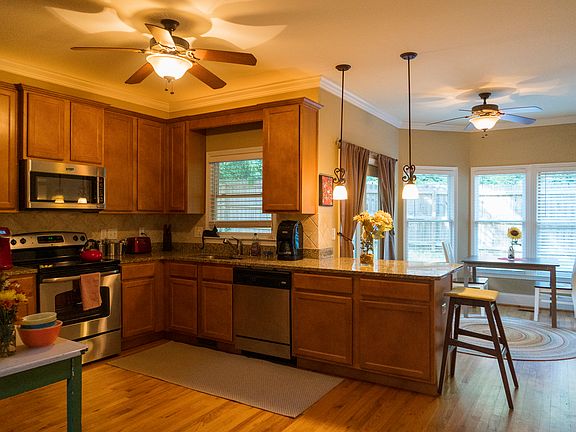 - Kitchen Features: Breakfast Bar, Cabinets Stain, Eat-in Kitchen, View to Family Room, Stone Counters, Breakfast Room