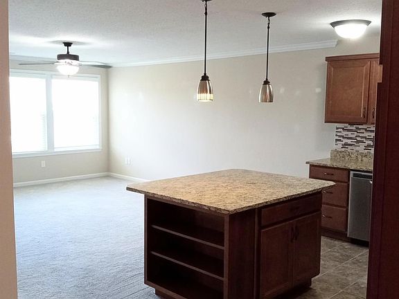 - Features: Kitchen Island, Marble/Granite/Slate, Solid Surface Ctr, Vinyl Floor, Wood Cabinets
