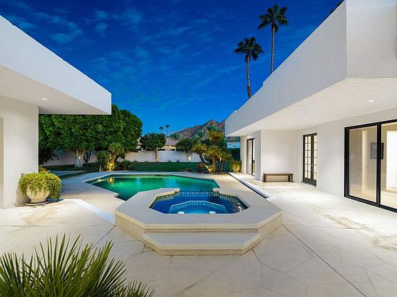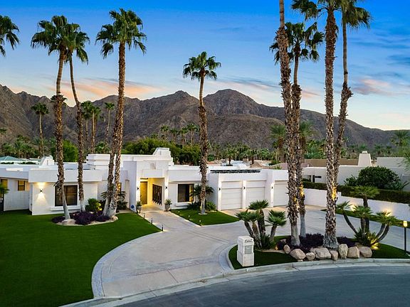 Stunning South Views~ Situated on a 1/2 acre with spectacular landscaping and dramatic Mountain Views, The property boasts ultimate privacy with the added benefit of having no HOA restrictions, making it a unique find in this exclusive area inside the gates of the exclusive Indian Wells Country Club. Thoughtfully designed layout that features No Steps. Owned Solar coupled with new HVAC and new Pool equipment, this home is unbelievably low maintenance. There are 4 ensuite Bedrooms plus a 2 bed/2 Bath separate Casita. Features; High ceilings and large windows that flood the generous living spaces with natural light. The newly updated Gourmet Kitchen features Quartzite countertops, top-of-the-line appliances, 2 dishwashers, a Butler's pantry, Bar and Breakfast Nook. The adjacent Family Room features another of the 3 Gas Fireplaces~ The luxurious Primary Suite offers a Spa-style bath with Dual vanities, Sauna, his & hers walk-in Closets, Fireplace. And wait until you see the yard! Walled with a custom Pebble-tec Pool and Spa, it is perfectly positioned for sun exposure and wind protection, along with panoramic Mountain Vistas and prolific Fruit Trees. Let your imagination run wild! The oversized 3-car garage with EV charging completes your picture-perfect lifestyle at this premiere Indian Wells location offering access to world-class Golf & Shopping, Paribas Tennis, & Dining Options.