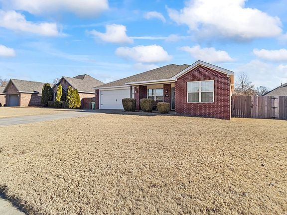 Wonderful home in the Spring Creek Park Subdivision! Well maintained with open living space has vaulted ceilings with hard-surface flooring throughout. Adorable eat-in kitchen is equipped with pantry, matching black appliances and wrap around bar overlooking living room. Well designed layout offers split bedroom floorplan with spacious bedrooms and master providing coffered ceiling, large walk-in closet, jacuzzi tub and walk-in shower. Tucked away in quiet subdivision yet centrally located with access to all that NWA has to offer. Fully fenced backyard and open patio space is perfect place for the family to unwind and watch the kids play. Great for the family with just minutes to Shaw Family Park. Come check it out today!