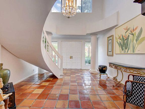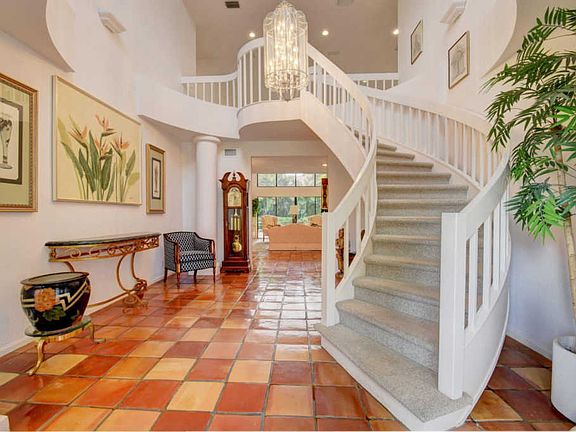 Popular 2 story 5 bedroom 'Carnegie' model with 3 car garage on quiet interior lot close to the park sold ''as is'' and ready for your renovations. Dramatic entry foyer with curved staircase. First floor Master bedroom with dual closets and updated Master bathroom in neutral tones with marble flooring. Also on 1st floor another bedroom currently used as an office and 1 and 1/2 baths (including cabana). Formal living room overlooks pool patio with dramatic 2 story ceiling height. Large island kitchen open to family room perfect for today's open concept. Formal dining room is oversized with garden views. Upstairs one bedroom has an ensuite bath while two more bedrooms share a connecting bathroom with dual sinks. Great space for entertaining. All this and 3 car garage. For more details see