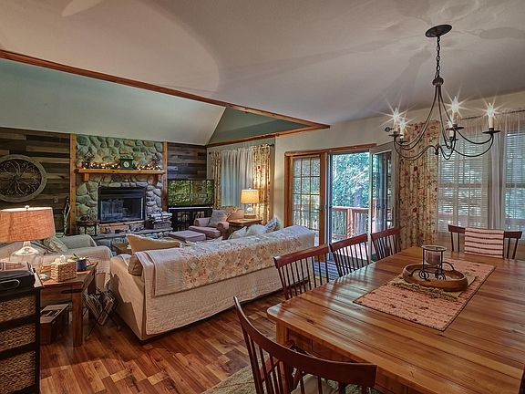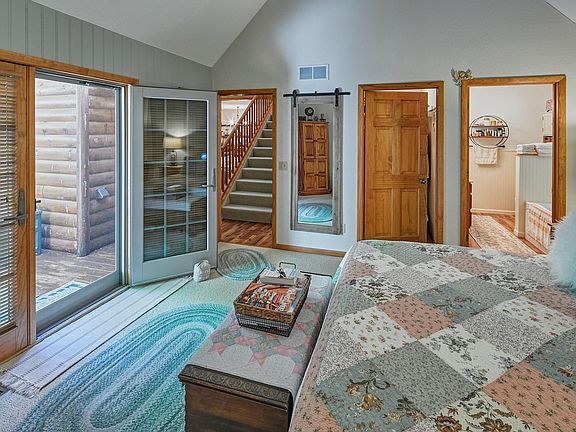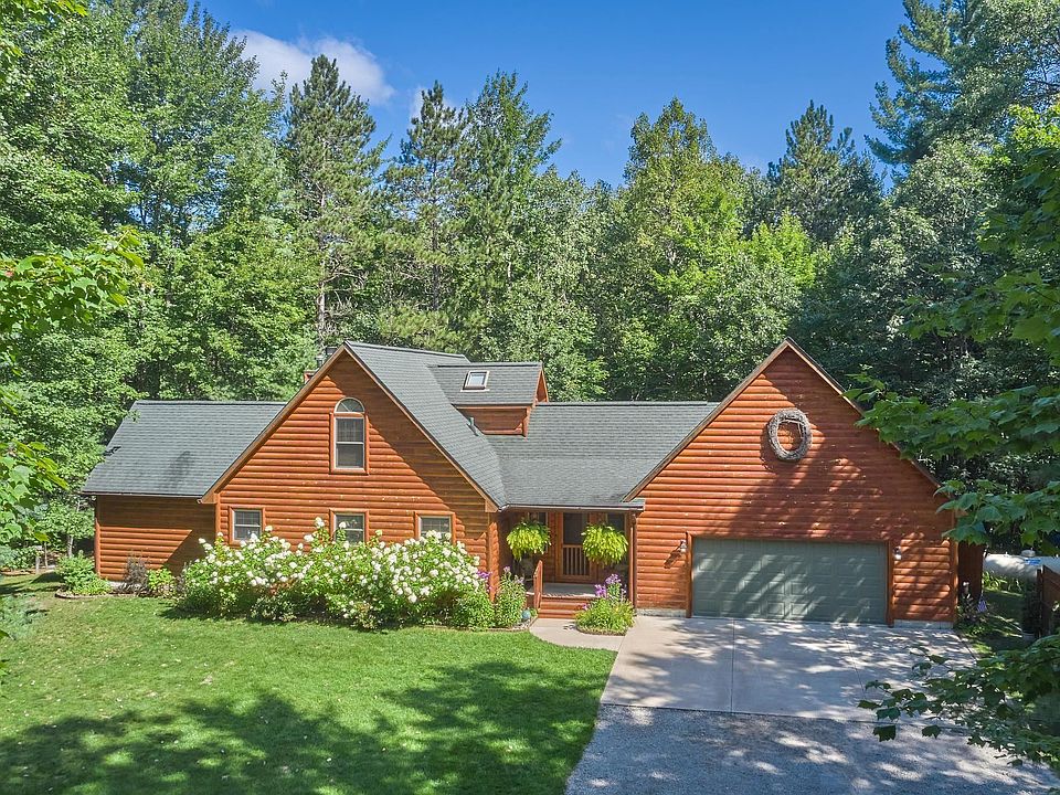 Welcome to this ideal Northern Michigan home nestled on 10.45 private acres with over 300 feet on the South Branch of the Boardman River! This beautiful log-sided home offers 2,544 square ft of living space with 3 bedrooms and 3 bathrooms. Primary bedroom/bath on the main floor! The spacious loft area complete with a bedroom and a full bath serves as a versatile space for guests. The vaulted ceilings and open-concept living area featuring a stunning stone-surround wood-burning fireplace and french doors that open to a wrap-around deck. The fully finished walkout basement provides additional finished living space and easy access to the outdoors. The 3rd bedroom in walkout is non-conforming. The property includes an attached garage and an additional detached garage, ideal for extra vehicles, a side-by-side, or snowmobiles. A garden shed offers even more storage options. This home is a must-see for outdoor enthusiasts looking for a peaceful retreat in the heart of Northern Michigan. Don't miss the opportunity to own this unique river property!