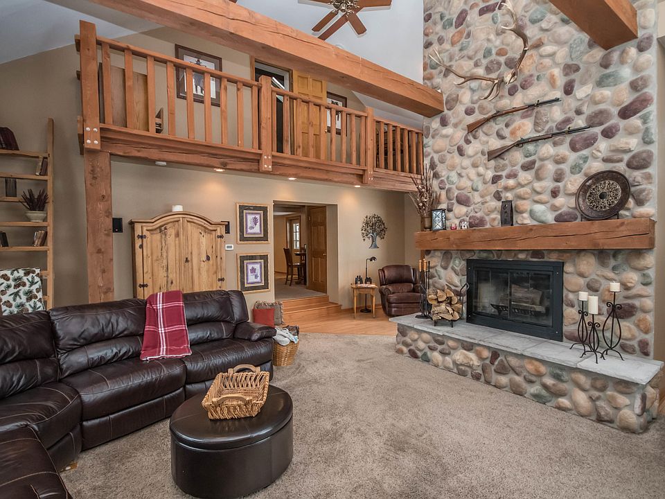 Marvelous split 4 Bdrm, 2 Bath home, set on picturesque 5.5 acres w/ conservation behind it. You will be drawn in by the beauty of the great room, with Cathedral ceilings & log beams. Master w/balcony overlooking the Great Room. Spacious kitchen right in the center of it all and access to the swimming pool in the backyard. Flow into the Family Room after dinner before putting the kids to bed. So much to do with all the room for your toys in a second 1.5 car garage. 2nd level storage in main garage. This property will surely bring many years of joy to your family. Kids play System & Pool, w/ pool equipment included.
