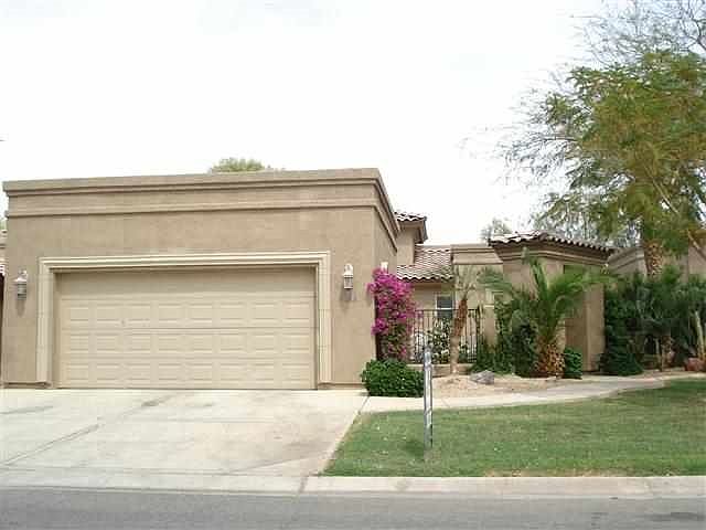 Luxury meets Form & Function is the only way to describe this La Quinta patio home. Enter through a private courtyard to see what makes this home so special! 3-Large bedrooms with 3-Bathrooms and spacious open kitchen where tons of Yuma's natural light flows. Granite countertops accent double ovens and gas cooktop with large work island. Master suite includes roman soaking tub with step-in glass block shower and efficient walk-in closet. Private patio looks into the greenbelt and sparkling community pool.