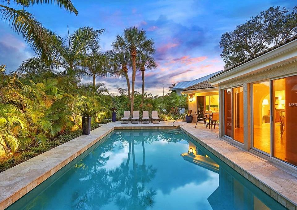 Motivated Seller!!! Positioned on Siesta Key's grand canal with 150 ft. of seawall and a private dock with 10,000 lb list, this island home exemplifies casual, coastal living. Remodeled, freshly painted and turnkey designer furnished to create a move-in ready retreat, the open floor plan is infused with ample natural light from a multitude of picturesque windows. Volume ceilings add to the uplifting feel, while carefree tile flooring flows throughout. The spacious sitting area overlooking the grand canal is the perfect place to sip coffee over a good book. Relaxing comes naturally in the master suite, with dual walk-in closets and vanities plus convenient access to the outdoor living area. New terrazzo pavers enhance the private pool, with mature Floridian landscaping establishing a tropical ambiance. Newer air-conditioning (2014), a two-car garage and security surveillance are featured for ease of living. Whether a year-round local resident or seasonal visitor, this Siesta Key home is sure to tick all the boxes for those seeking a leisurely island lifestyle.