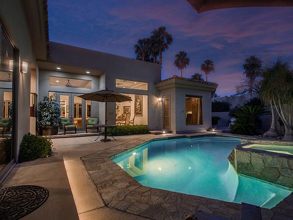 Gorgeous Custom Mediterranean Designed Pool Home Behind The Gates Of Indian Wells Country Club Has No HOA! Designed & built by the current owner, this 3,613 sq ft home has a great open layout with 4 bedrooms and 5 bathrooms. Chef's kitchen features rich wood cabinetry, sub zero refrigerator, double ovens, plus bar area. Living room with wet bar opens to the pool & spa. Elegant master suite with fireplace has a separate private office & lavish bathroom with walk in shower, separate tub and dual sinks. Two additional guest suites in main home plus stylish powder room for guest. Detached casita at back of home has kitchenette plus walk in closet. Sparkling pool area is secluded & offers gorgeous views of surrounding mountains. Property also features laundry room with sink & oversized 3 car garage. Home is uniquely behind the 24 hr guarded gates of Indian Wells CC without any HOA dues! The club has a beautiful golf course, clubhouse & is surrounded by mountain views. Indian Wells residents receive steep discounts throughout the city including tickets to the BNP Tennis Tournament. Call me today to see this incredible home!