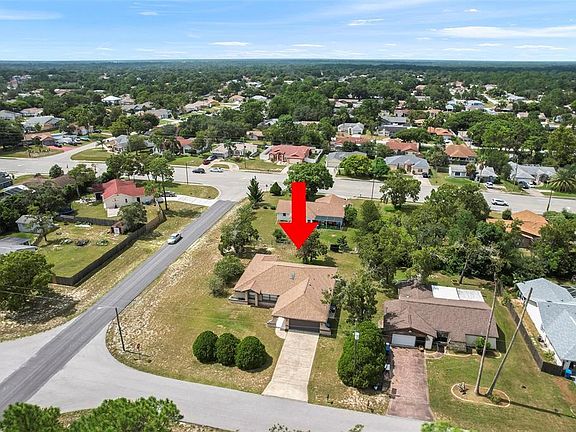 Fall in love with this sweet 3 bed, 2 bath, 2 car garage home in the center of Spring Hill! It has a brand new AC in 2021 and was reroofed in 2015. This split bedroom home sits on a corner lot; it boasts tile floors in the living area, kitchen and baths and wood look laminate floors in all the bedrooms. Vaulted ceilings with a skylight add extra volume and brightness to the open floor plan. The kitchen sports gleaming stainless steel appliances and tile counters. The laundry room inside with a utility sink offers convenience. Enjoy the large screened lanai with a pass-through window to the kitchen. There's plenty of room for grilling and relaxing, and it overlooks a back yard with lots of space for little ones or pets to play. Don't wait, this one won't last long!