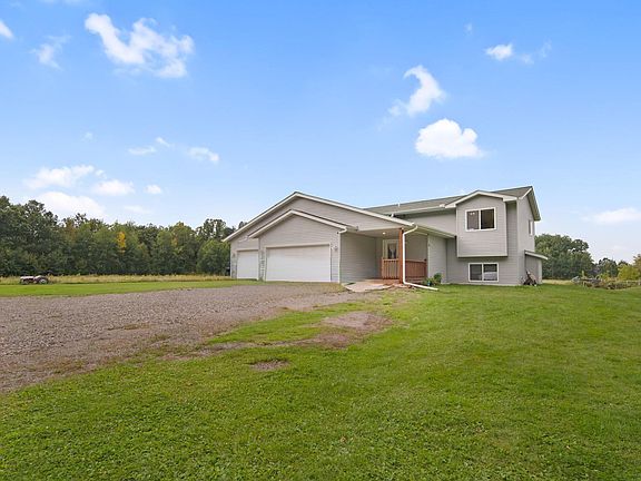 Highest and best offers due Saturday, September 27th @ 8 pm. A rare opportunity to own 30 subdividable acres in Braham! Move right in and enjoy this 2018-built split level home, with endless potential. Vaulted ceilings & an open concept floorplan. The kitchen features stainless steel appliances and a center island. Three bedrooms up plus a finished, walkout basement with new carpet. Owned water softener and water treatment system. Forced air heat and central AC. 3 car garage. Schedule your private showing today!