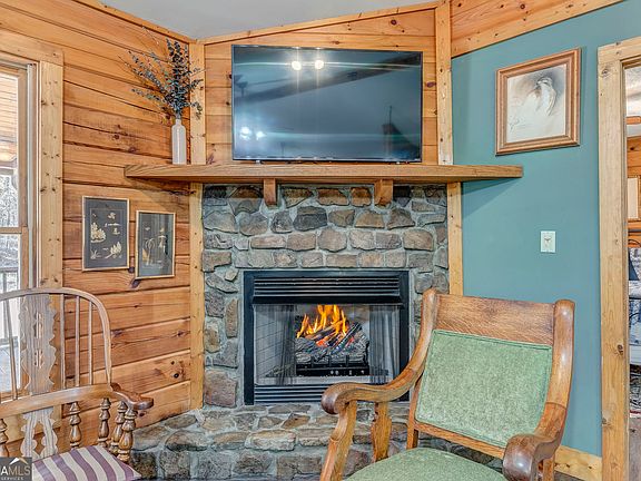 Charming Log Home retreat on 1.26+- acres nestled in the woods for ultimate privacy, this beautiful log home offers a serene escape with long new driveway, new shrubs planted for extra privacy in the future! Featuring two bedrooms and two baths, the home boast a split owner's suite layout, ensuring comfort ad convenience. The interior is adorned with sustainable LVP vinyl flooring and tile, and the home has been recently painted for a fresh feel. The outside logs was recently sealed for durability. Enjoy cozy evenings by the stone fireplace in the spacious living area, or unwind on the large rocking chair front porch. The open floor plan flows seamlessly into the dinning area and kitchen, perfect for gatherings. The property also includes a covered back porch and patio for entertaining or enjoying peaceful mornings overlooking the natural surroundings. Outside, you'll find a saltwater pool-perfect for relaxing in privacy-as well as a pool house for storing equipment. The property also includes a workshop/red barn/outbuilding and RV covered parking. Recently planted flowers and a beautiful new stone flower bed! Plus a gas operated generator! Your long driveway leads you into this serene, wooded retreat. A perfect blend of charm, comfort, and seclusion-this log home offers the lifestyle you've been searching for.