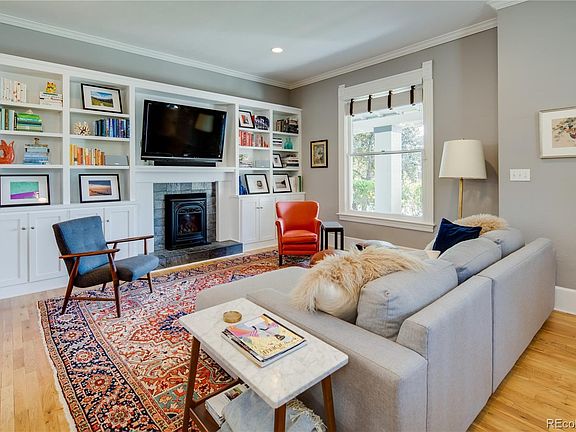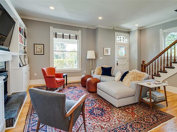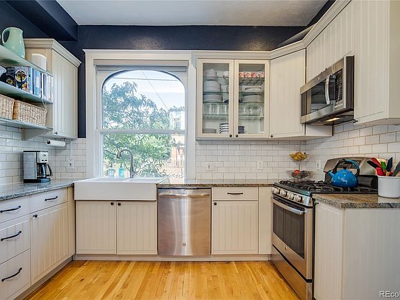 Gorgeous Victorian home on a quiet, large corner lot with 3 bedrooms upstairs. Located a short walk from Highland Square, Tennyson Street, and Sloan's Lake, plus only one block from Pferdesteller Park. Main level includes a bright open living area with a gas fireplace, extensive custom built-ins, and high ceilings. Gleaming hardwood floors throughout the home and large windows. Kitchen updated with granite countertops, stainless steel appliances, and a farmhouse sink. Three bedrooms, laundry, and two full baths upstairs. Master suite includes two closets (one walk-in and one large standard) and master bath with a separate shower and clawfoot tub. Off the kitchen is a playroom/office/bedroom and mudroom with ample storage for shoes and coats. Basement level includes a pantry and large storage room. The home has a wrap-around covered porch and professional landscaping. Private backyard is an oasis in the city with multiple seating areas, shade from tall trees, and irrigated garden boxes. Detached, oversized two-car garage with extra storage space. Home is zoned as a duplex, but is only attached to the neighbor by a 9ft wall in the back of the house (not noticeable from the street) The property lives like a single family home.