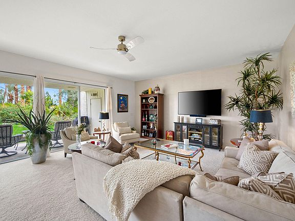 AVAILABLE NOW ....for Feb, March and April 2026. Indian Wells Country Club condo available for short-term 30 day minimum occupancy.. Beautiful landscaping, a sparkling pool, and sweeping panoramic views frame the living, dining, and kitchen spaces, with floor-to-ceiling large sliding glass doors that seamlessly blend indoor and outdoor living space with a covered patio and steps away from the pool. This contemporary 2 BR/2 BA are both ensuite bedrooms with walk-in closet and open to a private courtyard. The oversized primary suite has a beautiful comfy king bed and the spacious secondary suite has a queen bed. This fabulous home is complete with everything you need to enjoy Desert Luxury Living at it's best. The 24/7 gate guarded neighborhood is beautiful for morning or evening walks. Take advantage of retail shopping on El Paseo and minutes to La Quinta's stores, Vons, Trader Joe's and Starbucks. Indian Wells is ideally located between Palm Desert and Old Town La Quinta with an abundance of shopping, dining and entertainment. Walk to the famous Vicky's Piano Bar and a few blocks away is the ''famous'' Nest both restaurants have dining, music and dancing. Across the street is the Indian Wells Resort with 2 public world class golf courses and Indian Wells CC is a member of the Invited Family (formerly Clubcorp). Owner includes Cable TV, WIFI and utility allowance of $200 per 30 day period. (Includes gas and electric ). No pets. Security deposit $3000 and cleaning fee of $300. Garage is detached and within steps of the front door.
