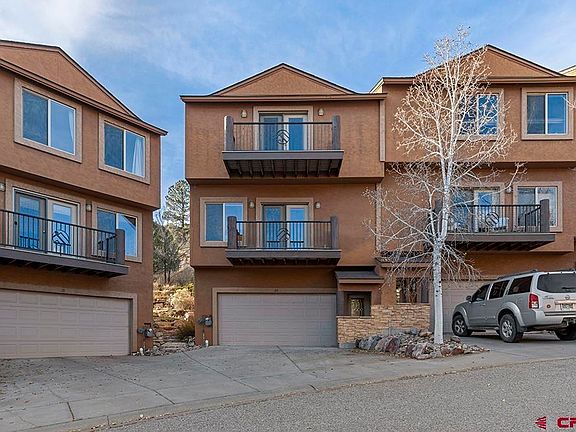 On the north edge of town, just across from the Animas River and Oxbow Park, you will find SkyDancer Townhomes. This spacious end unit is located at the back of this quiet community, offering the most in privacy, and nicest views on the street. Recently upgraded with all new wood flooring on main level, and new carpeting on the bedroom level, made extra cozy with in-floor radiant heat. It is ready to move right in. Skydancer is a well maintained, small group (27 units) of townhomes, with a prime location just across from the newly extended river trail, with a T- bus stop close by. You can walk across the street and be in the river. There are nice views from the living room and bedroom decks, plus there is an entertaining deck out the back, adjacent to dining/ kitchen. An oversized garage with storage and room for workshop. The main level has an open living/ dining/ kitchen, layout with half bath, and stacked stone gas fireplace. The layout and orientation of this home, plus high ceilings, and big windows, invites in lots of sunlight. Top level is where you will find double suites and a third room that can be used as a bedroom, office, nursery, meditation space, whatever you need flex room for! The primary bedroom has large walk-in closet, ensuite bath with tub, and deck.