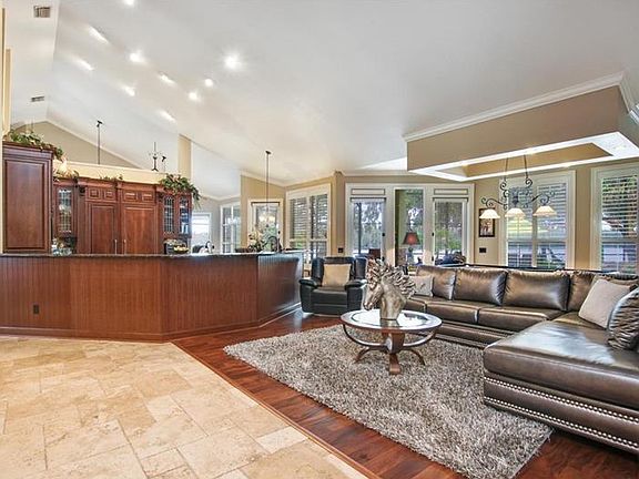 Upon entering this impressive, luxury home you will notice intricate details throughout. Starting with the distinctive double glass paneled doors leading in to the grand foyer. Formal dining and sitting room are step down from foyer. Gourmet kitchen features custom cabinetry, built in Thermador refrigerator, two sinks, new Grohe faucets, two garbage disposals, built in thermal convection oven and microwave, Dacor digital cook top, ice maker, granite countertops and eat in area. Living room with built in television above stone covered gas fireplace. Home has four bedrooms and four baths with exquisite details. Lanai complete with fish pond (Koi fish do not convey) with water fall, deep pebble based pool, two flagstone waterfalls and heated spa, lighting in both pool and heated spa, completely screened encased, tropical landscape and views of Lake McCoy. Distinctive soaring ceilings, travertine, wood and laminate flooring throughout, chair rails, ceiling fans, ornate lighting fixtures, plantation shutters, 8' wood paneled doors, panel molding, lighted niches, indoor laundry room (washer and dryer do not convey), four car garage, additional foyer, side entry with awning, irrigation system, roof replaced in 2008, a/c replaced in approx. 2010, interior freshly painted. Conveniently located near two international airports, new hospital, shopping, major roadways and area attractions.