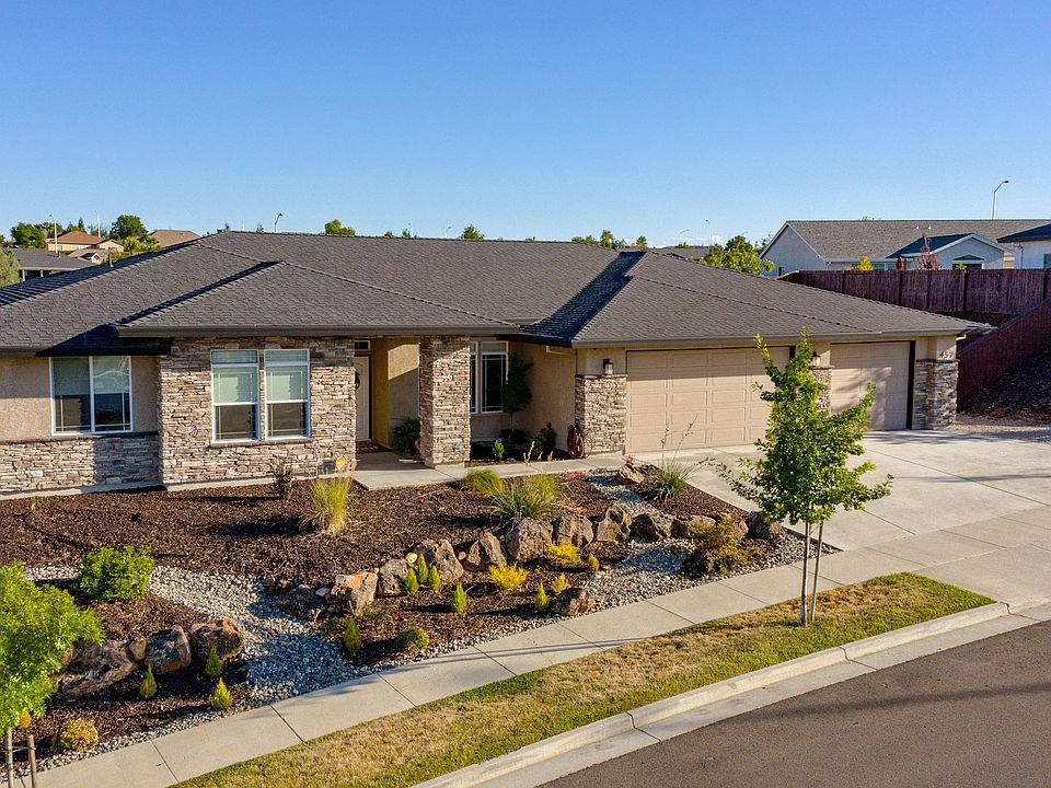 BEAUTIFUL Highland Park home with two master suites -- the second could be an in-law unit! The first hallway goes to three bedrooms and a bathroom for the kids or guests. The second hallway leads to the main master suite, which offers gorgeous Mt. Lassen views. The front rooms view majestic Mt. Shasta. This home is warm and inviting, with boxed beams in the living area and kitchen. The kitchen cabinets are cherry wood that go to the ceiling, and the kitchen island is a single piece of granite, unlike anything you've seen before! The same breathtaking granite flows throughout the home nicely. Beautiful barn doors at the formal dining/office area. The backyard has new landscaping since the appraisal and video. MUST SEE Video available!