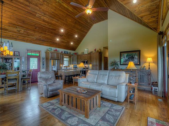 STUNNING VIEWS OF LAKE NOTTELY AND THE NORTH GA MOUNTAINS come with this quality built, FURNISHED home with attention to every detail. Spacious three bedrooms and 3 baths. Main level living with two bedrooms, 2 baths laundry, and 2 car oversized, heated & cooled garage. Beautiful great room with floor to ceiling stacked stone fireplace, tongue and groove ceilings, hardwood floors and a wall of windows to capture the magnificent views. Granite counter tops, stainless steel appliances, island, and lots of cabinets to make for a great useable kitchen. 10 ft ceilings. Alarm and sprinkler systems, exterior lighting package, fire pit, and 12x16 shed with power. Boat slip community. Stone fireplace on front porch to enjoy those cool mountain nights. Solar shades on deck. Lg. walk in closets. Own 500 gal. propane tank. Insulated garage doors with tinted windows. 2x6 Construction. IMMACULATE!!