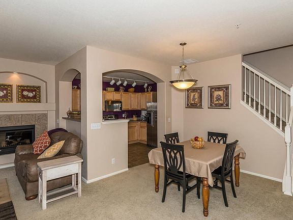 Beautiful 2-story unit with all appliances and new HVAC! Detached garage plus a reserved parking space. Townhome boasts stainless appliances, master suite, upstairs laundry, new dishwasher(quiet), covered patio, fireplace, pantry, window coverings and the cleanest home you will ever visit! The place looks great, is convenient to shopping, DTC, restaurants and the great outdoors! Hurry before its gone. Quick close and possession is possible. Furniture is also negotiable. Community pool and clubhouse w/ fitness center and playground and minutes from downtown Castle Rock!