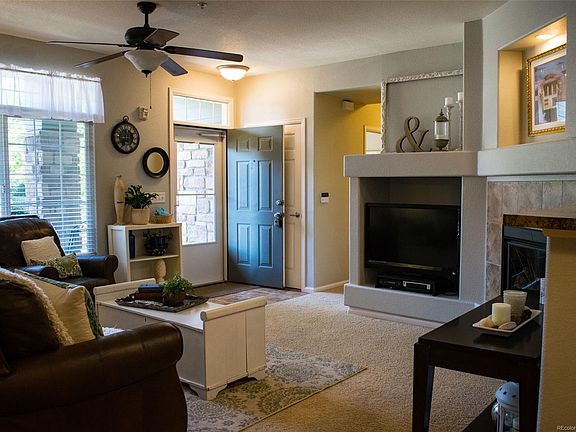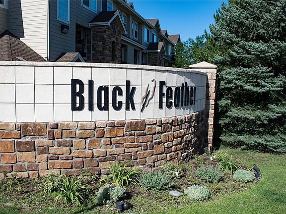 Only minutes from 1-25 and Founders Pkwy your going to love this immaculate 2 bed, 2 full bath condo. Located on the interior of the Black Feather community. Sunny south side of the building, it's a ground floor unit with 2 delightful patios to sip your coffee in the am. Large master w/ covered patio & large walk in closet. Big windows and transoms make for good lighting for an interior unit. Maple cabinets & stainless steel appliances await you in your kitchen that's open to your family room w/ gas burning fireplace. Large storage area, inside your condo makes it convenient & easy to access. Pool, clubhouse & fitness area too! Water bill is paid by your HOA dues. 2 assigned parking spaces located on the north side of the building #104, #197.