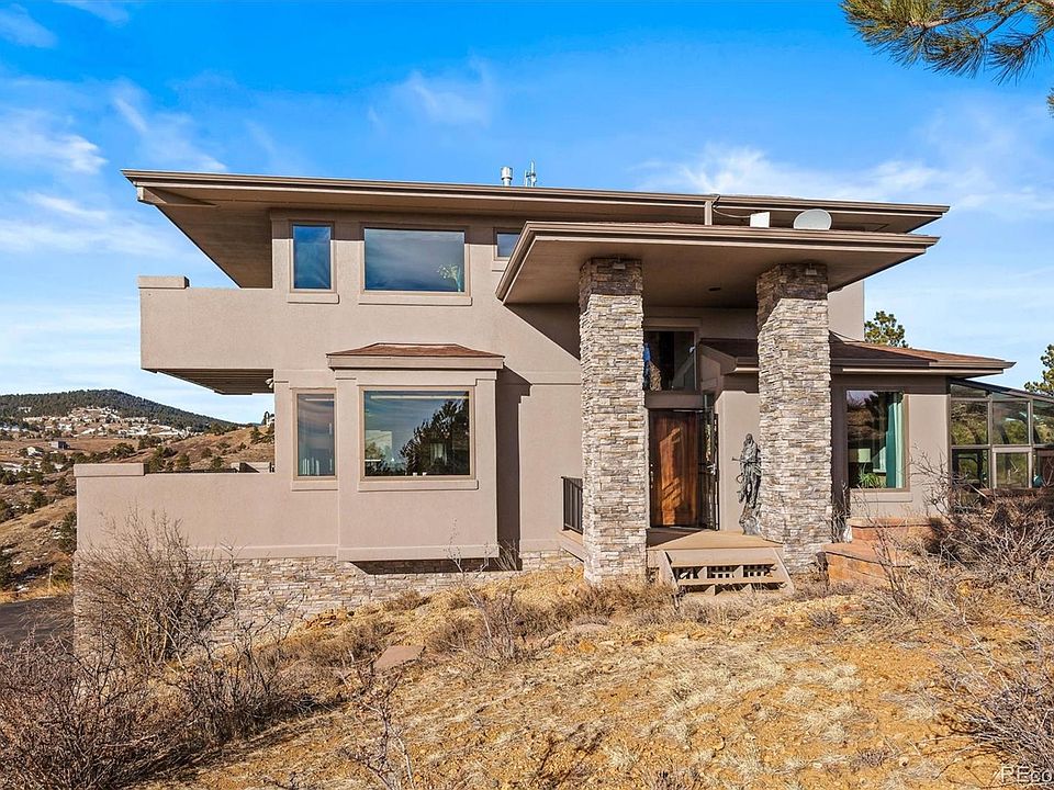 Experience breathtaking panoramas of both the city and mountains, with spectacular sunrises and sunsets. This custom-designed Mountain Contemporary home features a unique stucco exterior that blends seamlessly with its natural surroundings.