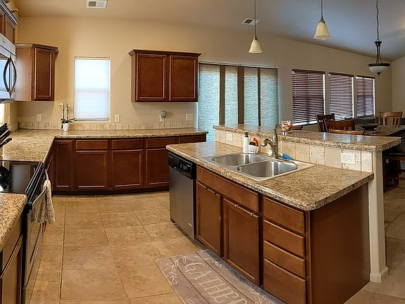 Beautiful, impeccably maintained Ranch style home in Chatfield III Subdivision. This stucco and stone, 1595 sq ft home features a split bedroom floorplan with 3 bedrooms, 2 bathrooms, and finished 2 car garage. Low maintenance, landscaped yard, with automatic sprinkler system and plenty of room to play in the backyard. The large "U" shaped kitchen is a chefs dream including stainless steel appliances and abundant counter space for large gatherings. The master suite includes a large walk-in closet and 5 piece bath along with a private entrance to the patio. This property is a must see and won't last long.