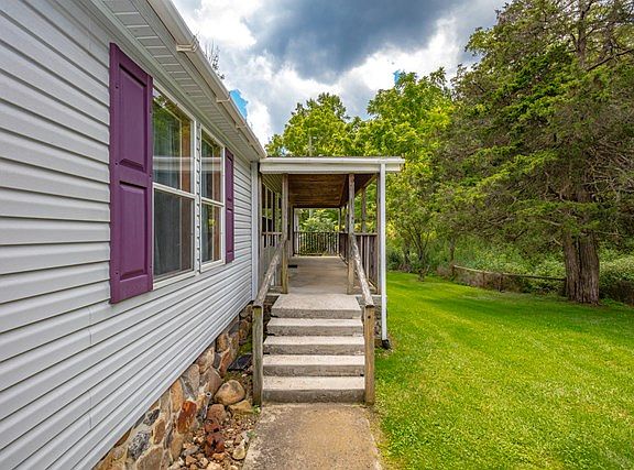 3 BR 2 BA Doublewide on +/-5.8 acres in Bland, VA. Hardwood, tile, and laminate wood flooring. Large master bedroom and master bath. Kitchen is really nice and has plenty of counter space. Wood burning fireplace in living area. Nice rear deck as well as covered front porch. Wood burning outdoor stove and propane heater in master bath for additional optional heating. Home has spring water and a septic. Nice location only about 10 minutes from town. Inquire today for a private showing!