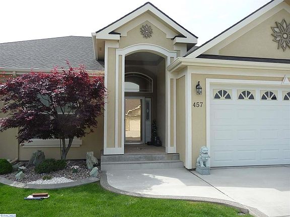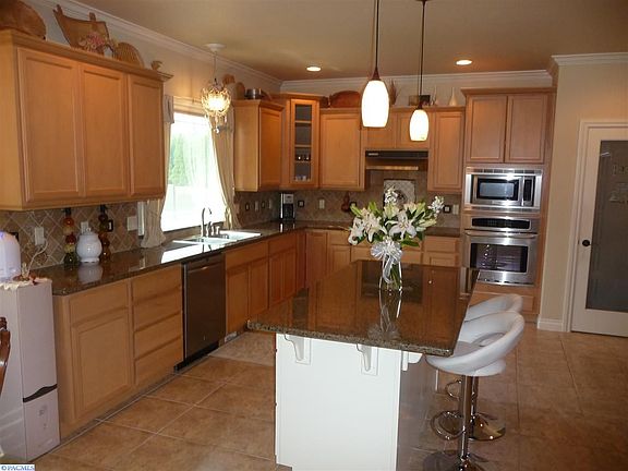 Awesome South Richland Rambler in great Cherry Wood Estates location. This 1 level house with stucco exterior is almost 2700 sf and was built in 2005. The kitchen is huge and has a large center island plus granite counters. The owners added the entire row of cabinets and counter space on the northside of the kitchen after 2005. There is both a kitchen nook plus a formal dining room. This fine house is wired for security, surround sound and plumbed for central vac as well. The 2 full bathroom have granite counter tops also. The landscaping is professional caliber and the backyard is fully fenced with a gate on both sides. Rain gutters and downspouts are also installed. The seller just put a new water heater in the garage. Master bedroom Suite is inviting and the master bathroom includes a jetted tub, huge walk~in closet and a walk~in glass shower. For those winter nights, there is a gas log fireplace in the living room. You will love the covered back patio and beautiful backyard. This location is close to schools, shopping, parks, trails and highway access...