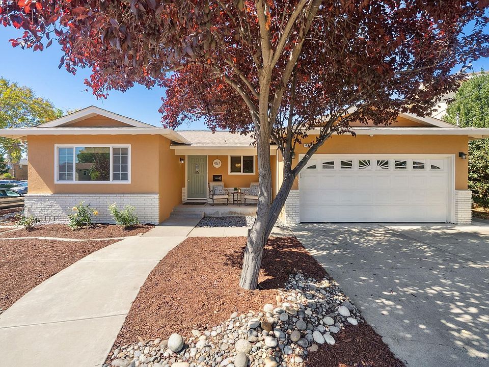 THIS IS IT! Charming East Facing one story 4 BR, 2 BTH home on a corner lot. Tastefully updated throughout with 16" tile flooring, gleaming hardwood floors in living room and bedrooms, and crown molding. Sunny updated kitchen with granite counters & stainless appliances. Gas fireplace in family room with mantle. Backyard includes a pergola with decking for relaxing in the shade, slate pavers, garden, and detached shed for storage or a home office. Walk to high school and shopping center.
