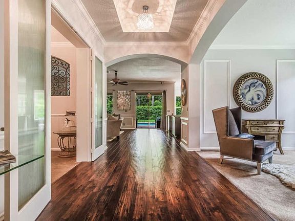 When looking for your dream home, settle for nothing less than luxurious. This stunning pool home in the coveted Palm Beach Plantation has everything that you could ask for. Beautiful upgrades, such as granite, crown molding, wood flooring, recessed lighting, stainless steel appliances and plenty of space for entertainment or tranquility. A large foyer greets you upon entry and shows off a beautiful living room and den. You are also immediately met with a spectacular pool view. The den holds a large custom decorative iron window providing a view into the large family room and the kitchen. A large island in the kitchen and wrap around counter space provides plenty of room for cooking and entertaining as well as a pantry for storage. The breakfast nook overlooks the back yard and pool.
