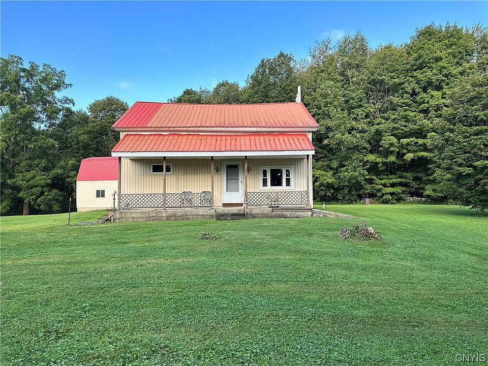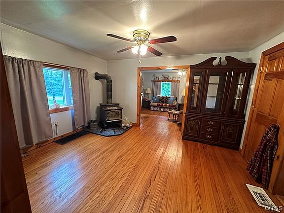 Come take a look at this 4 bedroom, 1 bathroom home. This home sits on a 1.43 acre lot. Inside, you will be greeted by beautiful hardwood floors throughout. Off the dining area, is first floor laundry room and a wood stove in corner of dining area. This home offers 4 spacious bedrooms with large walk in closet for plenty of storage. One of the bedrooms has cathedral ceilings. Home offers a spacious front porch to enjoy the outdoors and an enclosed side porch. Outside, situated on the lot is a detached barn/garage, offering ample space for storage or a workshop. Don’t miss the chance to unlock the true potential of this 4 bed, 1 bath home!