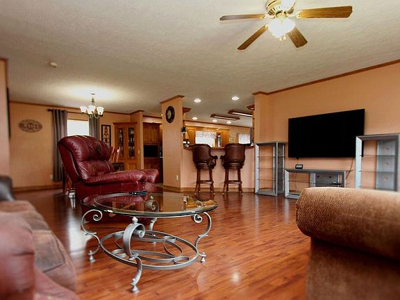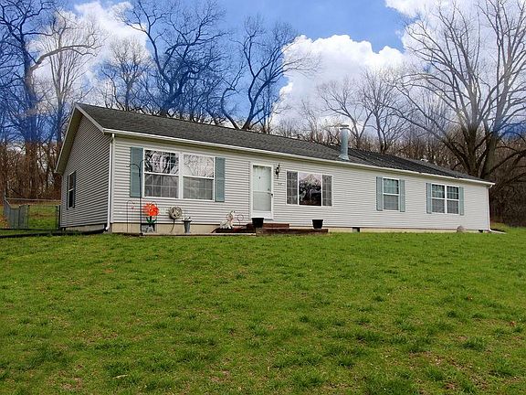 BEAUTIFUL HOME, BEAUTIFUL LOCATION. Over 2100 square feet in this 4 bedroom, 2 bath one-owner home on 2 acres! The kitchen is huge with a workable island and breakfast bar overlooking the living room. Living room has a woodburning fireplace and whole house has 8' flat textured ceilings, not the normal cathedral ones you see in manufactured homes. Both bathrooms have ceramic flooring and there is no carpet in the home anywhere! Sliding doors lead to the outdoor entertaining area with 21' solar-heated (on house roof, but can be removed) pool with relaxing deck and 1-year old solid cedar screen-in gazebo with metal roof. The backyard is fenced-in with chain length and there is a shooting area set up behind garage. The rolling land is so pretty with mature trees and room to run Now to the garage- a 24 x 30 completely insulated and heated garage with all the bells and whistles. Ask your agent for list of additional amenities for this home. New Prairie Schools, Galena Twp. Comcast Internet.