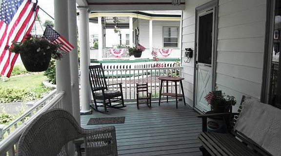 Classic New Englander, in the North End, w/wrap-a-round farmers porch, huge yard, 1 car garage & plenty of off street parking. This home has many upgrades, including new 30 yr. architectural roof, some vinyl tilt windows and new gas furnace, while still maintaining the charm of an era gone by. High inviting ceilings, tiled, eat-in kitchen w/separate utility room & modern pantry, formal dining rm w/pergo flooring, and open concept, arched living rm/family rm with H/W & knotty pine flooring...great for entertaining or for your family's enjoyment, Four bedrooms, two full baths, 2nd floor laundry, too much to mention. This is s a MUST see! Make this your HOME SWEET HOME!