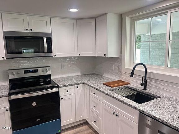Newly remodeled 2-bedroom, 1-bath home features a striking brick veneer exterior, exuding curb appeal and durability. Step inside to discover a tastefully updated interior where luxury vinyl flooring runs throughout, offering both beauty and easy maintenance. The kitchen is a standout with granite countertops, a sleek tile backsplash, brand new cabinets, and stainless steel appliances, combining modern style with practical functionality. The home also boasts several recent upgrades, including a new roof and a new HVAC system, ensuring comfort and efficiency. Outside, you'll find a stamped concrete covered patio, perfect for outdoor entertaining or relaxation, along with an outbuilding for additional storage or a workshop. A 2-car carport provides ample covered parking, making this home as practical as it is charming.