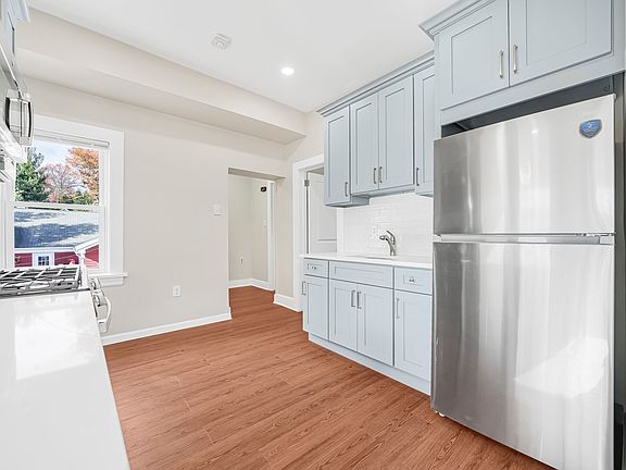 Completely renovated 2 bedroom apartment on the 2nd floor with brand new finishes throughout. This move-in-ready unit features a modern kitchen with new cabinetry, quartz countertops, and stainless steel appliances. New flooring, fresh paint, and updated lighting create a bright, contemporary living space. The bathroom has been fully remodeled with new fixtures, tile, and a sleek design. Additional upgrades include new doors, windows, trim, and HVAC for energy efficiency and comfort. Conveniently located near [shops, transportation, and amenities], this apartment offers the perfect combination of modern style and convenience. Nothing to do but move in and enjoy your brand new space! One parking spot in front of the home and use of yard available. Laundry in the unit. Owner will entertain a small pet with an additional fee. Landlord pays for water, lawn care. Tenants responsible for their own gas and electric, also snow removal where their car is parked and walkway to it. 1.5 month security deposit, first month's rent and broker fee is tenants responsibility.