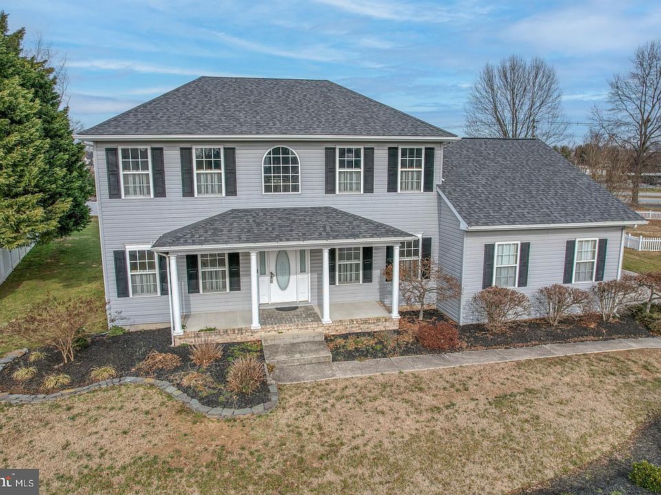 DESIGNED FOR GENEROUS SPACE AND FLEXIBILITY! The inviting front porch welcomes you to entry foyer w/grand staircase and exposing the large formal Livingroom with wood floors to the left and home office/guest-bedroom to the right. From the formal living room there is a large dining room with raised panels and designed for lavish entertaining. Straight ahead from foyer is a powder room and at end of entry hall a spacious kitchen and breakfast area with new Anderson sliding door to fenced back yard. The 20x20 Great Room w/fireplace features skylights and large enough for any occasion. Kitchen, breakfast area, formal living and dining room and Great Room and hall all feature wood flooring. As you enter the lovely wood staircase and upstairs hall to the right is the large owners suite with double door entry, oversized closet w/shelving, spectacular bath with whirlpool tub, separate shower, double sink and tiled flooring. There are three additional bedrooms and large hall bath w/tub and shower combo. The basement offers a half bath and is mostly finished with sheet rock and only needs lighting fixtures and flooring. Use your imagination as to how you want to use these areas. Seller has many recent improvements that include a two story composite deck w/new pillars, sprinkler system, new 30 year guaranteed roof, added outlets and much more. Did I mention a three car garage? This home has been well cared for and speaks of pride of ownership. Only a move to be closer to family make this home available. Opportunity is knocking so call today for an appointment to see this great opportunity to buy.