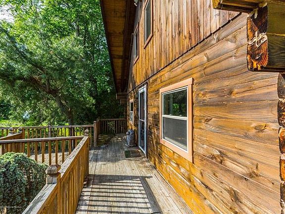 LOCATION, LOCATION, LOCATION! This RUSTIC, A-Framed Log Home is in the heart of Jackson close to shopping and most professional services.It boasts 3 bedrooms, 2.5 baths, and a BONUS room in the FULL finished walk out basement.The open concept kitchen, dining and living room areas encourage gatherings. Sliders off the kitchen lead to a 16x10 deck that wraps to front entrance and allow for extra entertaining space. Huge loft upstairs cooled by an AIR CON unit keeps the entire home cool.Full finished basement has separate heat and 1 2 bath.Reverse Osmosis water treatment too. Outside cement patio BBQ area, in ground pool with 2 covered side decks, huge 16x16 double door shed with cement floor. Property backs to woods. Retractable Awning and HOT TUB IS ''AS IS''. This property has A LOT to offer.