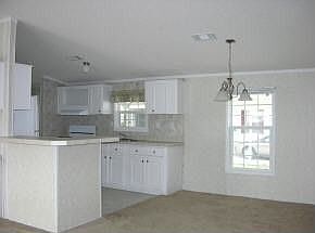 Brand new 3 bedroom 2 bath on a corner lot. Cathedral ceilings, double pane windows, large master suite with walk in closet, garden tub and a seperate shower. Home meets current wind load specs, singles roof. 13 seer a/c, 200 amp elctrics service. 24 hour guard, club house, 2 swimming pools and fenced parking for boats and rv's. Lawn care included in hoa dues (which are paid along with tax bill). You own the home and property.