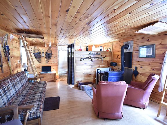 Maine recreational cabin for sale in LaGrange, Maine. Open concept cabin with 1 bedroom, bathroom, and a sleeping loft. This cabin sits on 43+/- surveyed acres. Great area for hunting bear, white tail deer, turkey, and grouse. Close to I95 and 1 mile from the ATV/snowmobile trails.