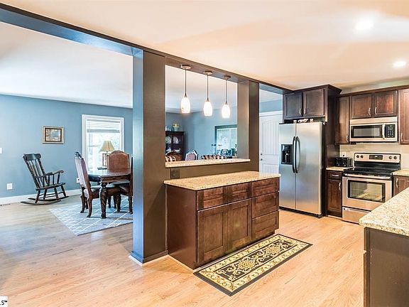 Unique opportunity to own this gorgeous home in Travelers Rest. This home offers 3 br's, 2.5 baths, a huge great room & a inground salt water pool. There is a workshop (Man's dream) that is over 3300 sq. ft. It has 3 rolllup doors and 3 yard doors. There is a separate septic system and power for it. There is also a doublewide mobile home on the property & there is no value being given to it. It is livable and could be used for a multi family situation or you could rent it out. It has a fenced in area and a nice storage unit. The great room has a gorgeous rock fireplace and is 24x28. It has lots of windows overlooking the pool. The bonus room offers a fireplace as well. Just too many features to list- this one is a must go inside.