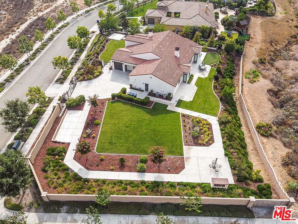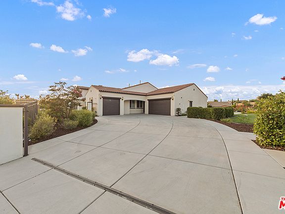 Nestled behind a gated driveway, this luxurious and immaculately maintained Stellan Ridge 5-bedroom home is situated on nearly a full acre of land and surrounded by stunningly upgraded outdoor areas. Entertaining options abound in the spacious living room with fireplace, which opens into a formal dining room with access into the kitchen. The sprawling great room includes a family room area with fireplace that flows directly into a casual dining space and the gourmet kitchen featuring double ovens, stainless steel GE Monogram appliances, granite counter tops, breakfast bar, cherry cabinets, a huge organized pantry, and butler bar. Twinkling city lights views appear from the primary bedroom suite, which boasts a spacious sitting area, walk-in closet, and spa-like bath with dual sinks and a vanity space between, as well as separate tub and shower. Secondary bedrooms are wonderfully proportioned, one of which includes an en suite bath. An outdoor oasis surrounds nearly every side of the home, including massive grass yards, concrete patios for outdoor dining and relaxing, city lights views from the back yard, beautifully manicured landscaping, and even a putting green! Fully fenced, including a gated driveway entrance, this is the epitome of quality indoor/ outdoor living.
