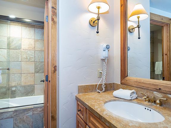 Two Bedroom Loft Unit with southern exposure and views of Gold Hill. The Mountain Lodge offers on site amenities including concierge, ski valet, shuttle service, steam room, pool facilities, fitness enter, The View Bar & Grill, and a Christy Sports rental shop. HOA dues cover utilities, management fees, contingency fund, and insurance ensuring hassle-free ownership. The property rests between two creeks, has trail-side ski-in/out access, and is a short walk to the Gondola and the Mountain Village Market.