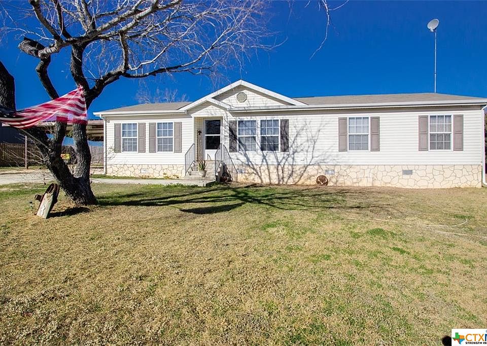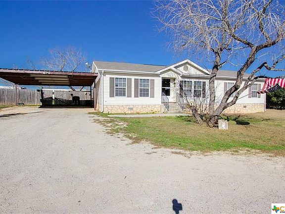 This manufactured home is retrofitted (to fit FHA and VA guidelines) and sits on a little over an acre on the outskirts of Seguin. 3 bedroom 2 bath with 2 family rooms. Detached carport with security lights. Netted fencing around the whole yard and privacy fencing around the backyard with a shed (electrical finish and detached carport). Just 2 minutes from Lifegate Christian School. No HOA so bring your horses, chickens, RV, etc. Septic system was previously pumped.