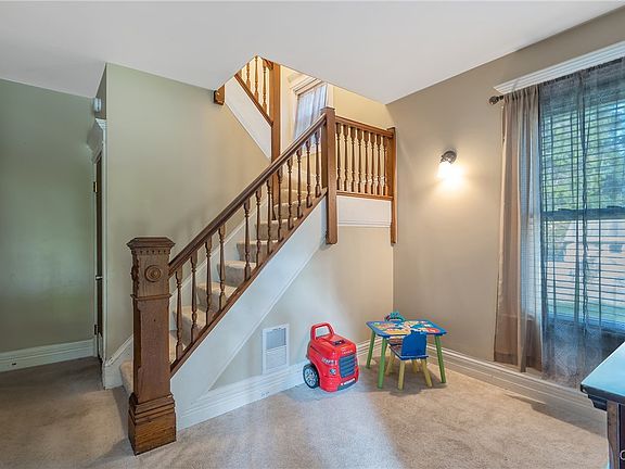 This charming colonial features a welcoming front porch that overlooks a tree-lined street, perfect for enjoying quiet evenings. Inside, you'll discover finished hardwood floors beneath the carpet, enhancing the elegance of the living room and dining room. An additional versatile space can serve as a second living area or office overlooking the backyard. The kitchen is combines functionality with style. Plenty of counter space for meal prepping . A brand new half bathroom the open foyer offers a great area completes the main floor. Upstairs, you'll find three to four spacious bedrooms and a full bathroom, providing comfort for the everyone. This home also boasts a full attic and basement, ensuring ample storage space. Recent updates include a brand-new furnace, freshly painted interior, updated light fixtures,new carpet, landscaping and a newly installed fence. The large two-car garage adds to the convenience. Located close to all amenities, this home is a perfect blend of charm, space, and modern updates. Don't miss your chance to make it yours!