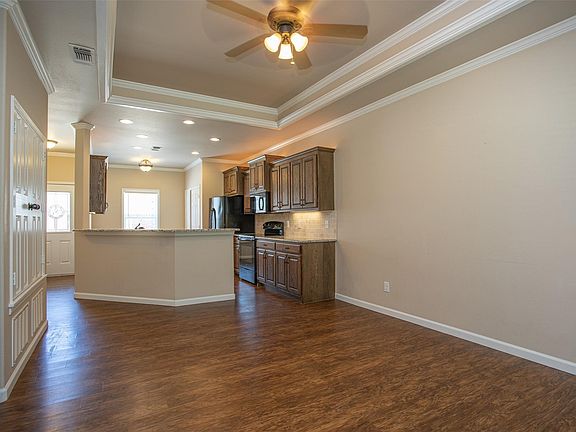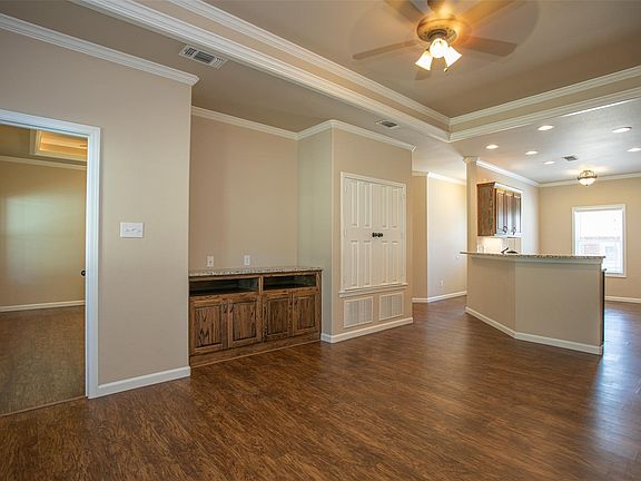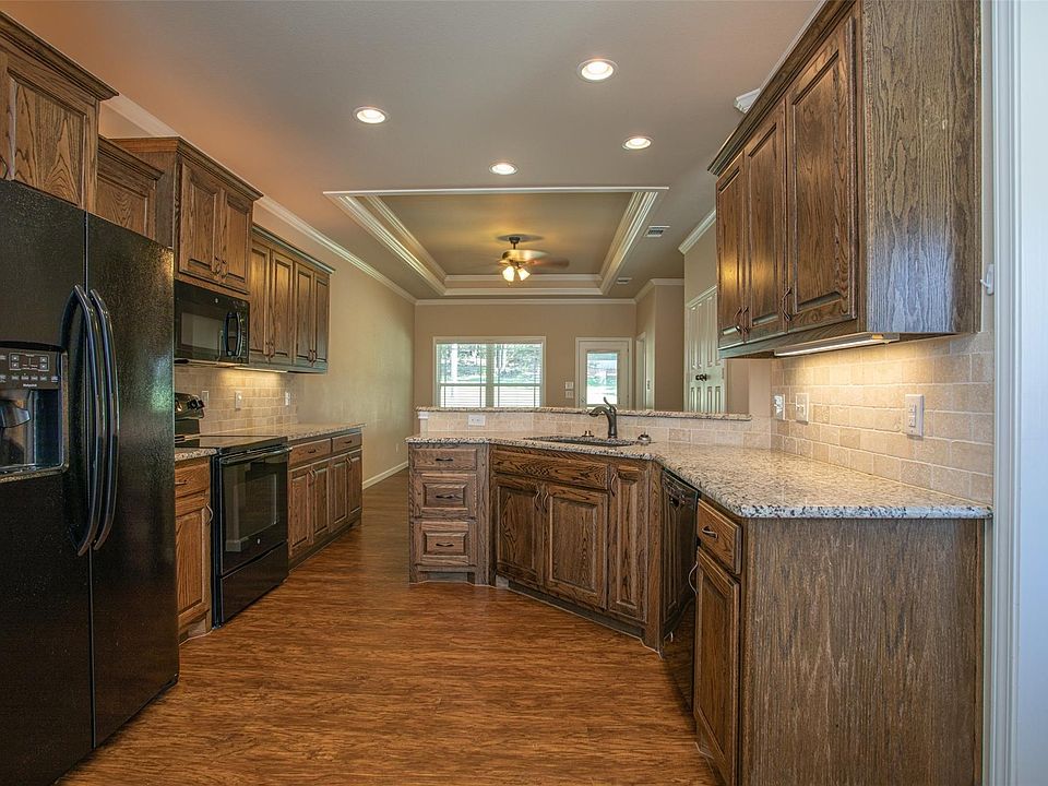 Covered porchesGranite countertopsStone backsplashTrey ceilingsCrown moldingMetal roof