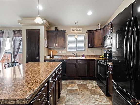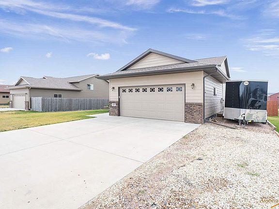 You will love this amazing Box Elder home: 4-bed, 3-bath, 2-car garage, +2100 sq ft, privacy-fenced in yard. The main floor has an open concept kitchen and living room with a patio door that leads to a big back deck, showcasing the nice fenced backyard. 2 beds on the main floor, including the master en'suite with 2-sinks and a walk-in closet. There are awesome arches, quality flooring and a tray ceiling. The basement has recently been completely finished, with a large family room and a nicely stained exposed beam. This home has outstanding curb appeal, with mature landscaping and brick accents on garage. The best part is that there is a wonderful graveled RV parking pad on the side of the home! There is room for your boat, camper, or extra vehicles. Close to Douglas schools and Ellsworth AFB. All you have to do is move-in! Call for your private tour today!