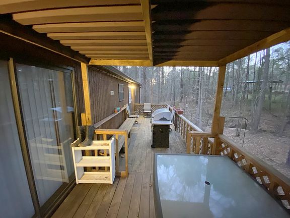 HIDDEN TREASURE- This is truly a hidden GEM. Must come view to appreciate all of the beauty of this Cedar Double Wide Mobile Home. 4 Bedrooms, 2 bathrooms. Living Room AND a Family room with a fireplace. Front and back decks are in great condition and provide wonderful views of the peaceful wooded 1.5 acre lot.