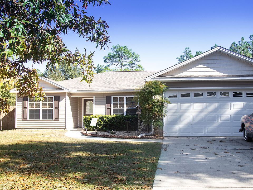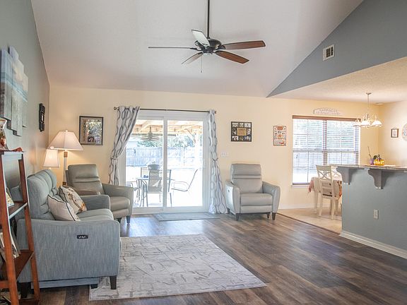 Wow! This 4 bed 2 bath newer built home has everything! Inside, you're greeted with huge, vaulted ceilings. Tons of natural light spills into the living room through the brand new sliding glass door, showcasing the LVP floors. In the kitchen, you'll find beautiful granite countertops, tile floor, a snack bar, and brand new Maytag appliances. The huge master bedroom has easy access to the kitchen, and has its own bathroom with a double vanity and huge bathtub.All four bedrooms are carpeted for easy upkeep, and a brand new AC was installed in spring 2022!Out back, you'll find a covered patio for grilling, an above ground salt water pool with custom built decking, and a shed to store your tools.The huge .36 acre lot gives you tons of room for storage, fun, and is all low maintenance