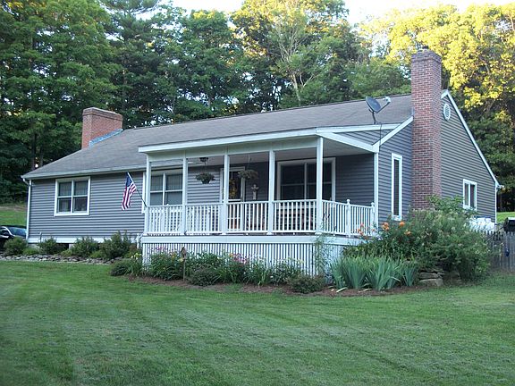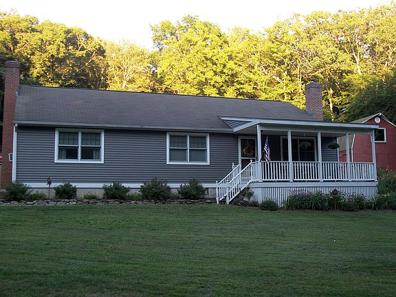 Just move in!! Bright and open Ranch home set on beautiful 3 acre lot. A covered front porch welcomes you as you enter the home. Large remodeled kitchen with granite counters, and stainless appliances, offers plenty of space for entertaining, plus french doors to new patio. Cozy living room features a pellet stove which warms the entire home. Master bedroom has private bath recently updated, plus 3 other bedrooms (town states 3 bedrooms total) offer plenty of space for everyone. A second updated bath features neutral tile. Enjoy the outdoors on the new patio with firepit, overlooking private back yard. Home offers a Generac generator runs on propane, Barn with 100 amp service and storage above. The basement offers plenty of storage plus laundry. Home has been very well maintained - completely rebuilt approx 20 yrs ago.