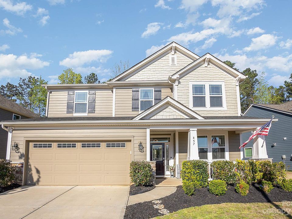 Located in the heart of Lake Wylie, in a lakefront community, complete with its own hiking trail. This stunning property features an open floor plan with nine foot ceilings and eight foot doors throughout. Guest suite is on the first floor, while the four main bedrooms are on the second floor, offering complete privacy for your visitors. The main suite features tray ceiling with his & hers walk-in closets. The bathroom is complete with dual vanity and a walk-in spa shower. This home has many upgrades, such as LVP on the first floor, custom pantry and an extra-wide staircase with oak treads. This property includes an office nook with custom barn doors and a flex room with french doors. Large windows provide plenty of natural light with views of the preserve in the back. The kitchen is a chef's dream come true, featuring SS appliances and ample counter space. Enjoy relaxing on summer nights with a drink on the expansive patio. This home offers easy access to nearby shops and restaurants