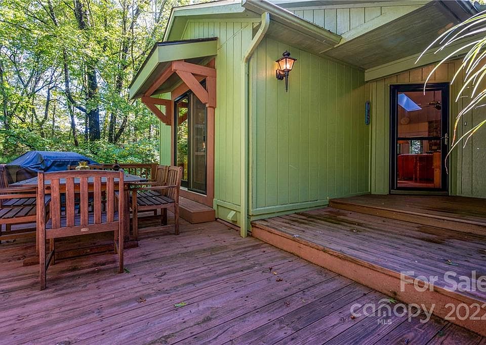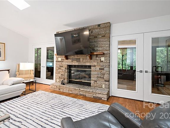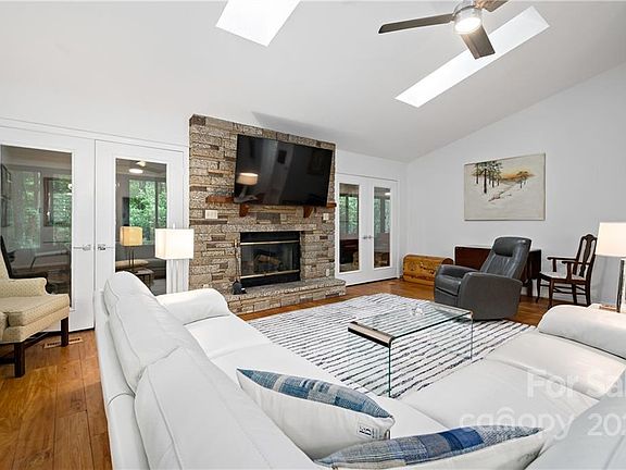 Lovingly kept home on a private lot in Connestee Falls. Convenient to the East Fork Gate and amenities. Freshly painted and updated for a more modern feel, this home has many wonderful details such as easy to maintain new wood floors and luxury vinyl plank, updated master bathroom and walk-in closet, stainless steel appliances, well crafted book case and spacious open design. Skylights in the great room bring in lots of light and the stone fireplace adds to the cozy mountain home feel. Expanded decks and upgraded sunporch allows you to enjoy the natural setting surrounding the home. Third bedroom is currently being used as a den.