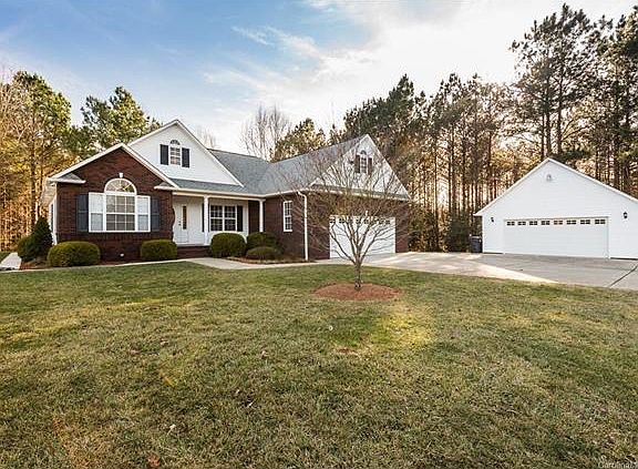 Georgeous custom built home w/access to lake lookout, gated area in country setting. 1.49 ac (approx 1/2 ac wooded); vaulted ceilings: LR/MasterBR/front BR. Granite kitchen countertops. Oversized 2 car attached garage. Wonderful detached 2 car garage is perfect for storage.Fully insulated, sink-running water. Pull down stairs. Perfect for boats, motorcycles,4 wheelers, etc. Beautiful back covered porch for observing nature. Community offers storage for boats,RV's, trailers. Boat dock area,white sand beach for swimming. Covered pavillion w/picnic tables.