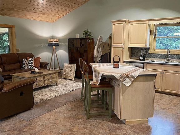 Bright and spacious! This is an immaculate two bedroom, one bathroom, 1200 square-foot second-floor apartment with an open concept kitchen, dining room and living room that has a gorgeous whitewashed cathedral ceiling. 2nd Bedroom can be set up as an office space or bedroom. Completely furnished and move in ready! Originally built as an In-Law suite attached to the northern wing of a beautiful contemporary post and beam farmhouse, above the garages, one of which is separate and designated for the tenant. Private interior and exterior stairways. Private deck overlooking bucolic country surroundings with abundant wildlife. No other residences in sight! Hike, snowshoe, or snowmobile from your back door! 10 minutes to Jiminy Peak ski resort. If you are looking for a quiet country setting near all that Berkshire County has to offer - LOOK NO FURTHER! Rent includes all furniture, appliances, washer/dryer, TV, full kitchen, 2 parking spaces (1 inside, 1 outside), heat, hot water, electric, Wi-Fi, trash pickup, plowing. No pets, no smoking on property. Month to month lease, $1000 refundable security deposit due at signing.